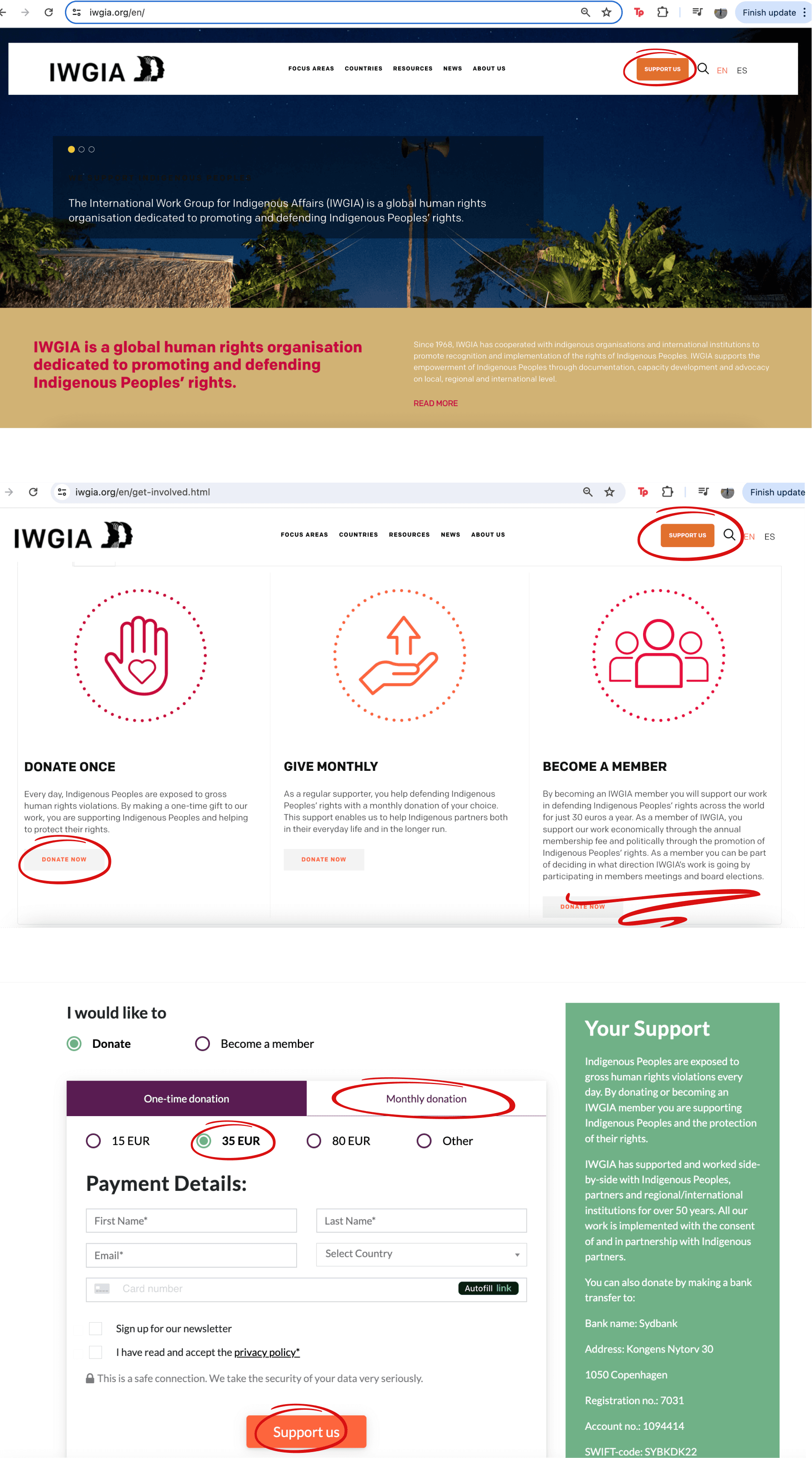 enable potential donors who are interested in IWGIA's work to efficiently learn about the charity and donate through a straightforward process?